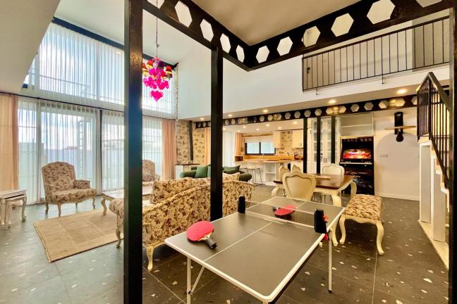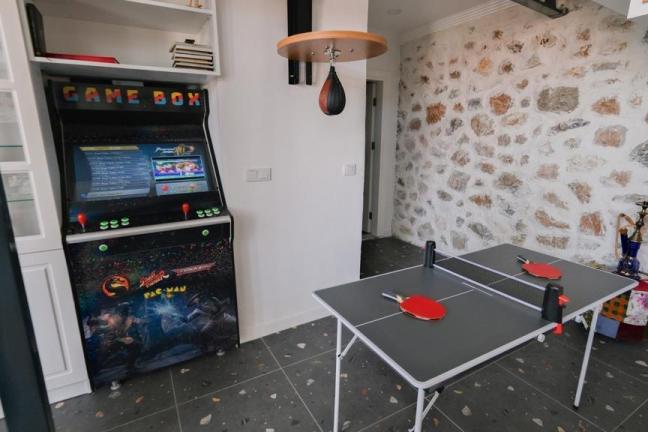 Villa Gamer, 4 odalı ve 8 kişilik konaklama kapasitesi ile muhteşem bir tatil deneyimi sunuyor. Villa Gamer, eğlence ve konforun mükemmel bir birleşimini sunarak sunarak muhteşem anlıyor. Villa Gamer, özellikle kalabalık arkadaş grupları tarafından tercih edilen bir tatil destinasyonudur. Villamız, eğlenceli aktivitelerle dolu geniş bir yelpazede hizmet sunmaktadır. İçerisinde bulunan bilardo masası, masa tenisi, dart, şangırdama, pencikbol ve atari gibi detaylar, yıllık tatil boyunca keyifli vakit geçirmenizi sağlar.