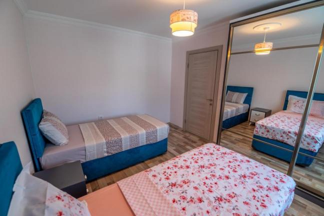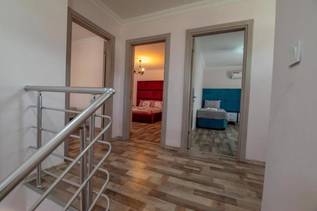 Villa iç mekanları, modern ve şık tasarımıyla öne çıkar. Her detay, konfor ve estetik bir dengeyi sağlamak üzere özenle seçilmiştir. Geniş konaklama alanları, çeşitli yatak odaları ve konforlu oturma alanları, aile üyelerine evlerini aratmayacak bir konaklama deneyimi sunar.